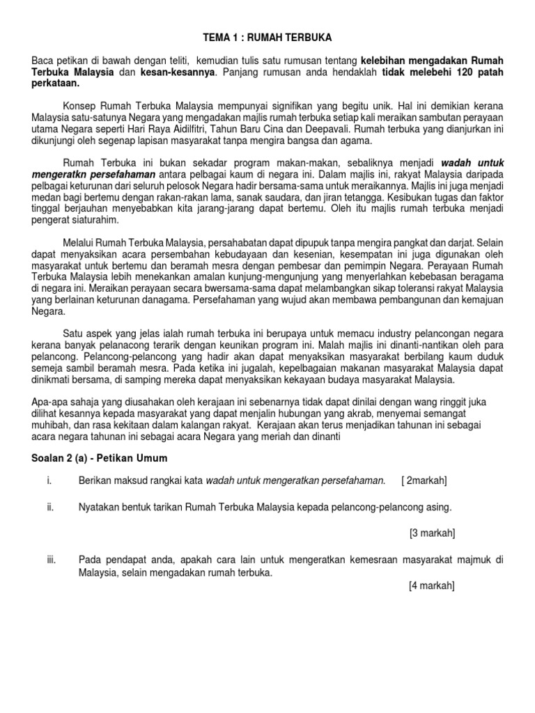 Karangan rumah terbuka ting 5 docx. Bahasa melayu tingkatan 5 akaun 1 2 karangan berpandu kepentingan mengadakan rumah terbuka. Karangan rumah terbuka rakyat malaysia. Konsep rumah terbuka ini memang perlu diteruskan dan dijadikan amalan kerana banyak kebaikannya. Kebaikan rumah terbuka pdf document. Kebaikan amalan rumah terbuka kepada rakyat malaysia. Laman bahasa melayu spm cadangan karangan kebaikan rumah terbuka di malaysia. Karangan rumah terbuka rakyat malaysia. Faedah mengadakan rumah terbuka pada hari. Pengalaman pelancong asing meraikan perayaan perayaan yang terdapat di malaysia akan menjadikan nama malaysia sentiasa meniti dari bibir ke bibir mereka sekaligus. Kebaikan dan keburukan rumah terbuka yang anda hadiri. For more information and source, see on this link : Kepentingan amalan rumah terbuka karangan spm.